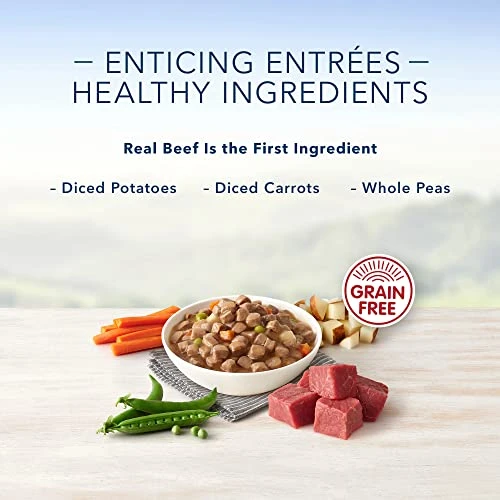 - WHOLESOME INGREDIENTS: BLUE wet dog food contains NO chicken (or poultry) by-product meals, NO corn, wheat (a common thickening agent used by other brands) or soy, and NO artificial flavors or preservatives