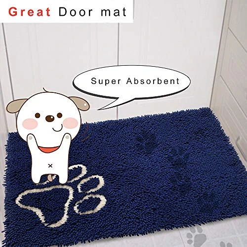Cosyroom Microfiber Dog Rug Door Mat For Dirty Dog Chenille Mud Absorbent Dog Area Rugs Machine Washable Dry Navy Blue 26 X 36 Inch