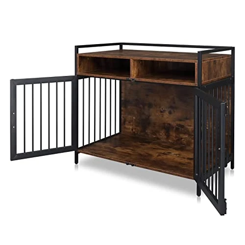 - 【Multi-functional Wooden Dog Crate】 The large dog crate appearance texture is industrial style. The load capacity for a large dog kennel is 300lbs. With 2 storage cubes and 1 open shelf, can hold the books, plants, etc. avoid chaos. Also can as a sofa table, coffee table, bedside table, or even a TV cabinet.