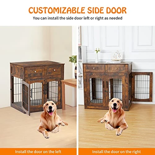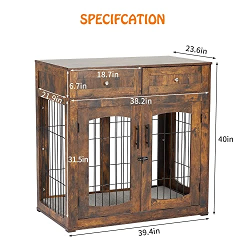 - 【Extra Storage Space】This wooden dog cage furniture is equipped with 2 large drawers, you can use it to store dog toys, food, etc., and the wide table top can be used to display plants, magazines, photo frames, night lights and other decorations