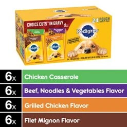 PEDIGREE CHOICE CUTS IN GRAVY Adult Soft Wet Dog Food 24-Count Variety Pack, 3.5 Oz Pouches