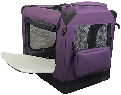 - Free carrying bag and fleece bed included; a handle and hand carrying straps on the crate, hand carrying straps and adjustable padded shoulder strap on the carrying bag allow for many carrying options; folded crate with just 3″ height for easy transport and storage