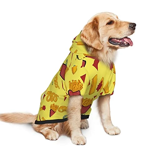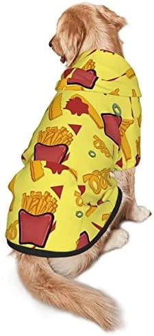- Well-Designed: Fries Pattern Fast Food Larger Pet Dog Costume Pets Wear Hoodies,A High Cut On The Belly For Easy Access To The Toilet. The Head Fries Pattern Fast Food Design Is Easy To Put On And Take Off, Providing Lightness And Relaxation For Energetic Pets.