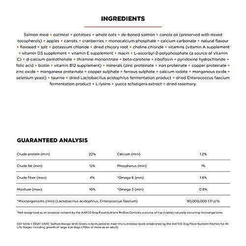- WITH NATURAL INGREDIENTS: Dry dog food packed with premium-quality salmon, antioxidant-rich fruits + veggies to support immune system health, and whole grains for an excellent source of energy.