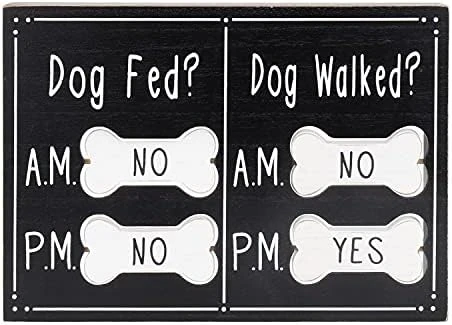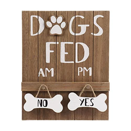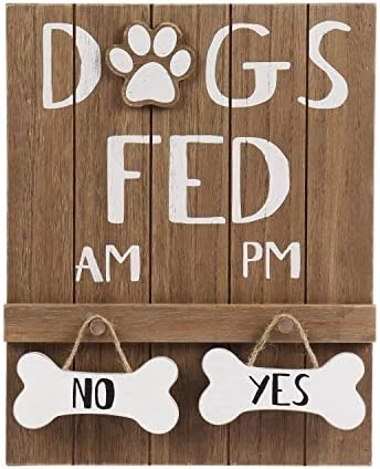 - USE/PURPOSE: Great and fun way to keep track of when the dogs are fed in the morning, afternoon, or dinner. Hang this meal scheduler in the mudroom, entry way, or dog room and easily flip and change the reversible “No” and “Yes” bone shaped signs.