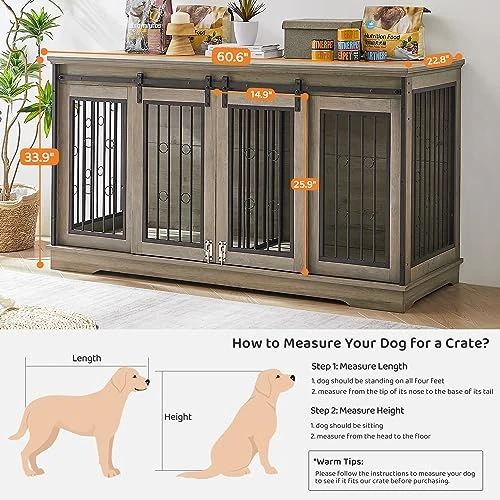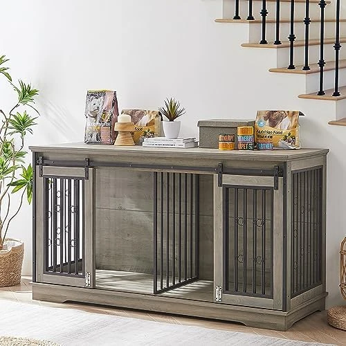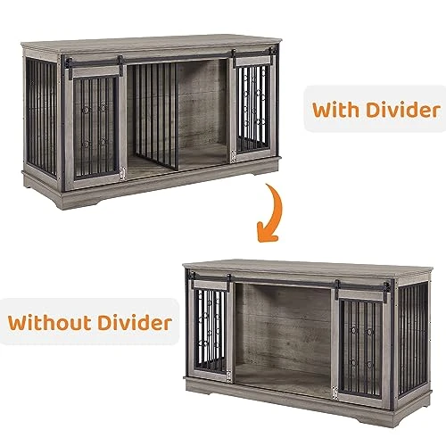 - 【Suitable for 2 Dogs】Our large dog crate furniture features double sliding doors and a removable internal partition, which can comfortably accommodate two puppies. Even two dogs with different tempers can get their own space. You can also easily remove it to create a larger space for a large breed dog.