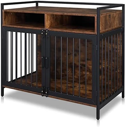 - 【Considerate Designs】 Kcarl home furniture dog kennel has double doors, a counter top rail and adjustable table legs. The double doors allow easy access for dogs, the counter top rail prevents the table from tipping over and the adjustable table legs make it easy to solve the problem of uneven floors in your home.