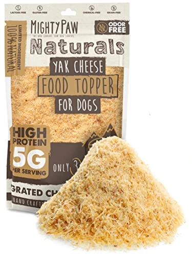 - High in Protein for Happy Pups: The Mighty Paw Yak Cheese Food Topper is naturally high in protein and calcium, which may support healthy muscle and bone growth. With 5 grams of protein per serving, you can feel confident knowing your dog’s getting the best!