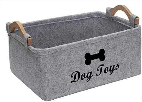 - 3: Eco-friendly Puppy Toy Storage: Made from felt, lightweight with wood handles make it easy to transport or move when needed.