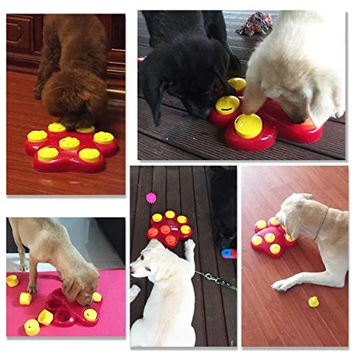 - [UNIQUE DESIGN] The hidden food box design can hide different foods in 7 holes, exercise and stimulate the dog’s thoughts to make it “work hard” and bring fun to you and your puppy. This is a dog slow food training device that can be used to provide exuberant, strengthen and test the mental stimulation needed for its skills.