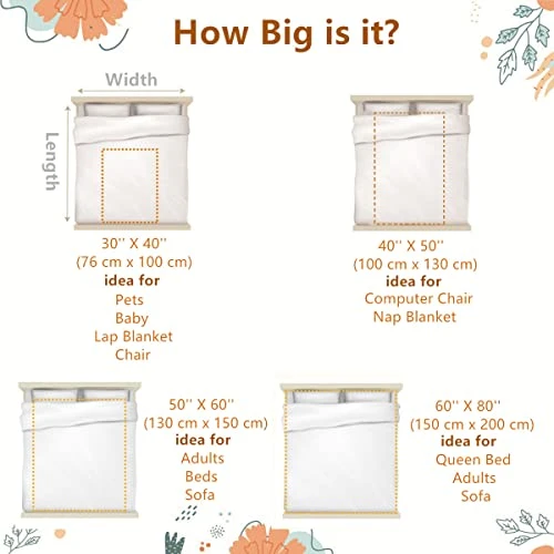 - ฅ Versatile Use & Size: There are four size of throw can be choose, such as 30″x40″, 40″x50″, 50″x60″ inches. 60″x80″ inches are suitable for family home use, such as pets blanket, Air-conditioning blanket, nap blankets, lap blanket, small child blanket, car blankets or picnicking blankets etc. You can buy the corresponding size according to your needs.