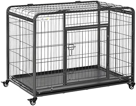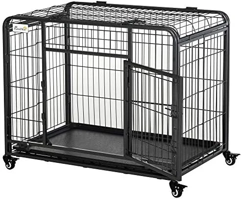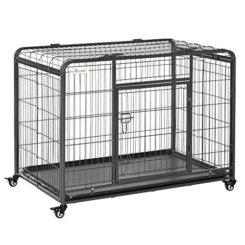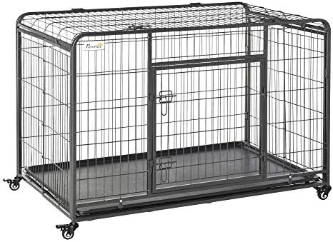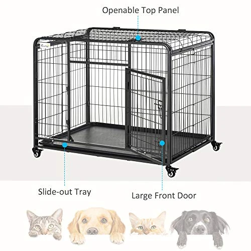 - Easy Mobility: Our heavy duty dog cage features 4 high-quality rolling wheels for easy and effortless movement. Plus, each of them has a built-in brake for added security and to keep your pet in place.
