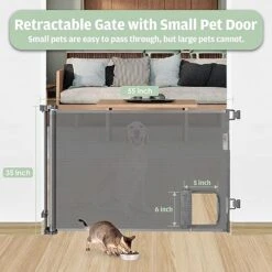 - Perfect for Indoors and Outdoors: This retractable pet gate with cat door is suitable for doorways, kitchens, hallways, the bottom of stairs, decks, porches, etc. and other restricted areas of the home, providing a safe area for your little one and furry friends.