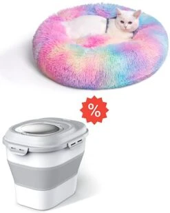Somkaco Collapsible Dog Food Container 30Lbs + Donut Calming Dog Bed 24inch