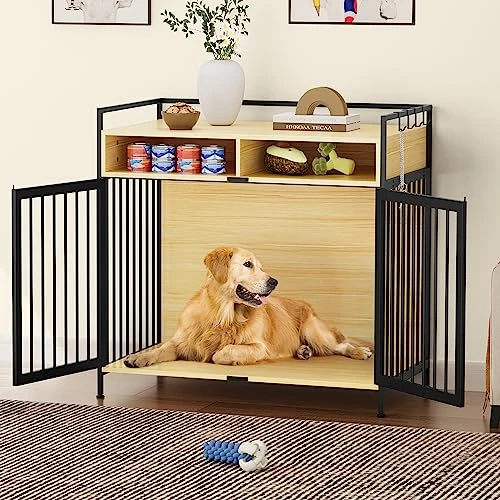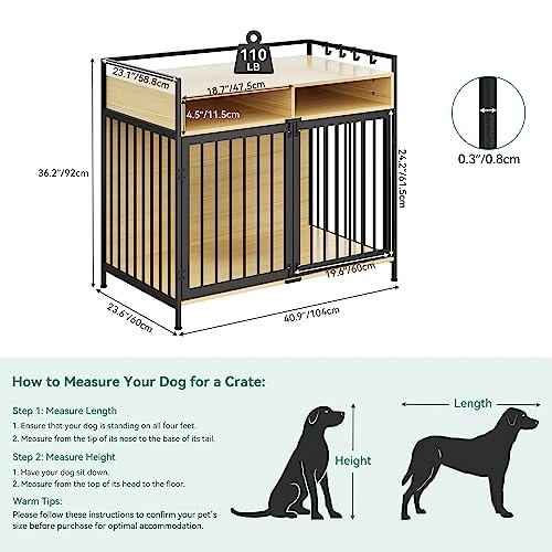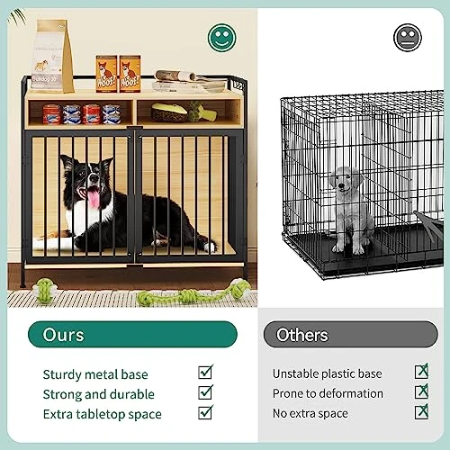 - Dimensions and Style: The overall size of the kennel furniture is 40.9″ L x 25.1″ W x 31.8″ H, it’s suitable for providing small and medium dogs with spacious living space; Fashionable appearance and retro style will perfectly harmonize with your room